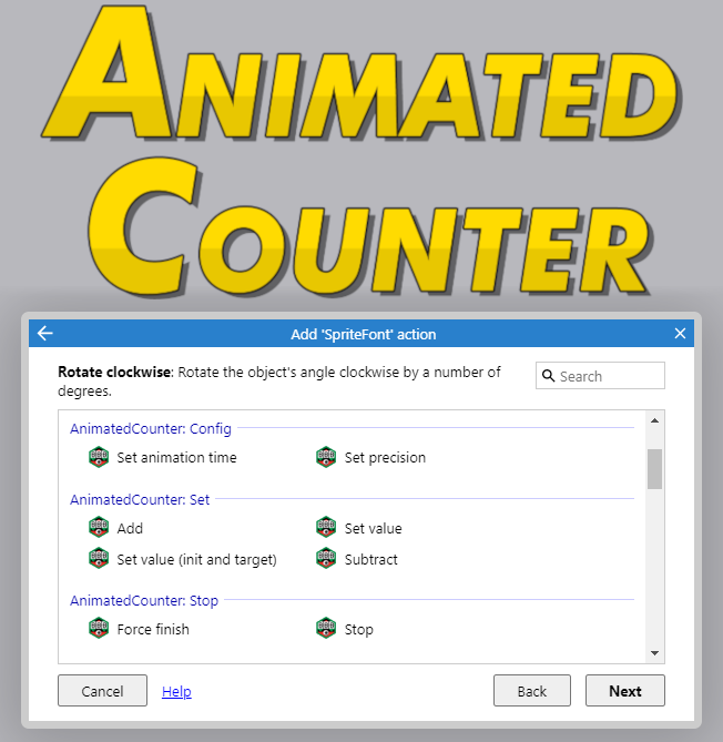 AnimatedCounter behavior addon for Construct 2 and Construct 3. (Updated to SDK v2)
