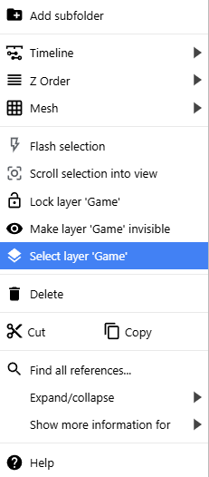 - Select layer: select the layer which the selected instance belongs to. This is the same as selecting a layer through the Layers bar.