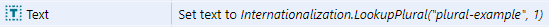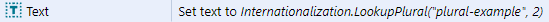In order to look up the plural form the LookupPlural expression is used passing in an additional value which is used to decide which plural form will be used.