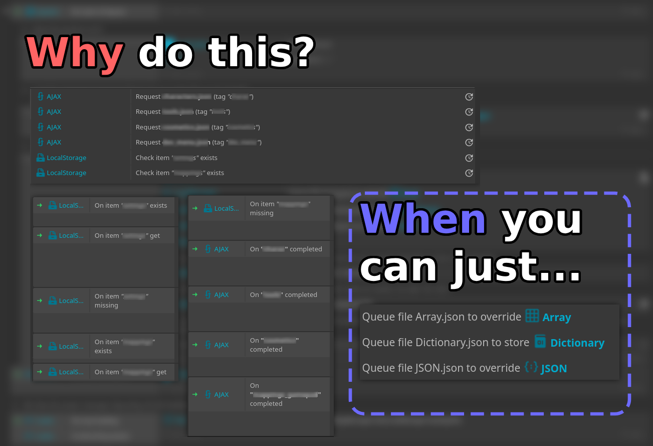 A simplier way to load project files, local data and its storage. Removes the necessity of AJAX