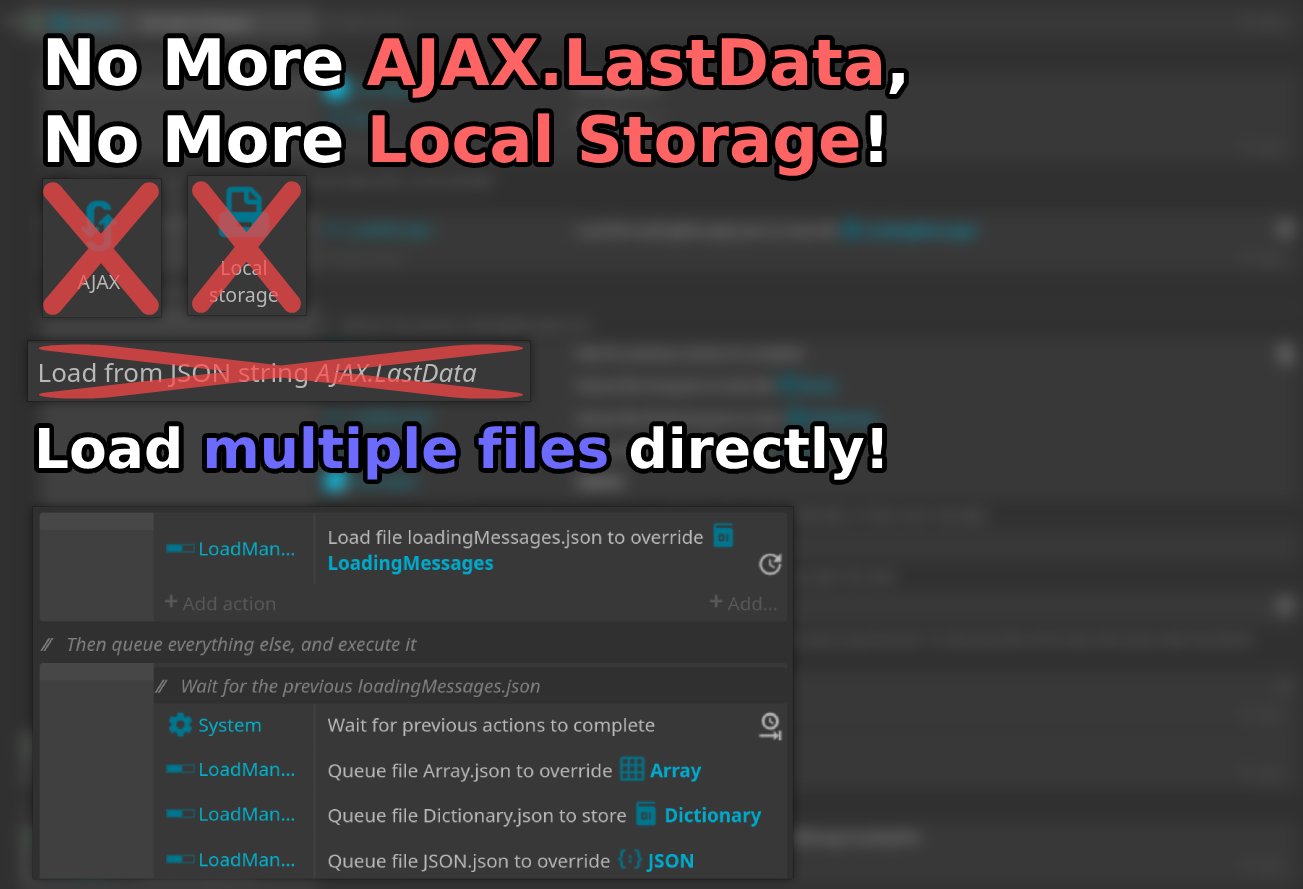 Load the data from files and storage directly to objects! No more AJAX.lastData! No more LocalStorage!