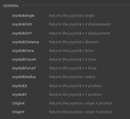 The plugin allows you to easily add one or multiple joysticks on the screen. The joysticks have 3 touch events and 3 dragging modes: